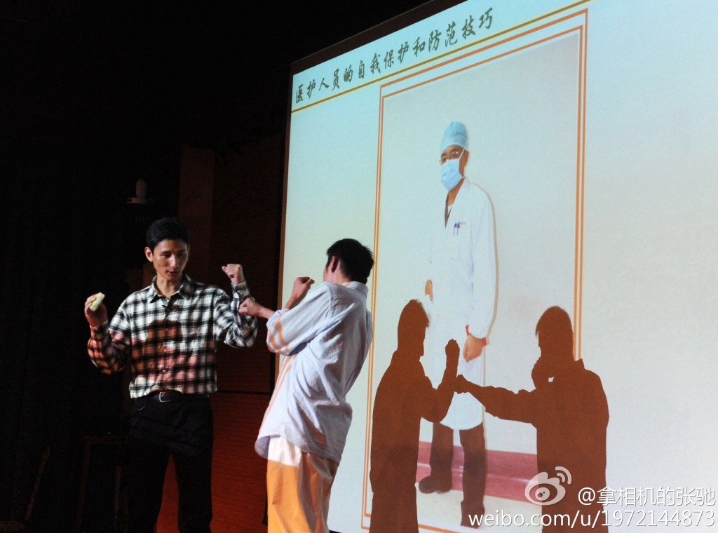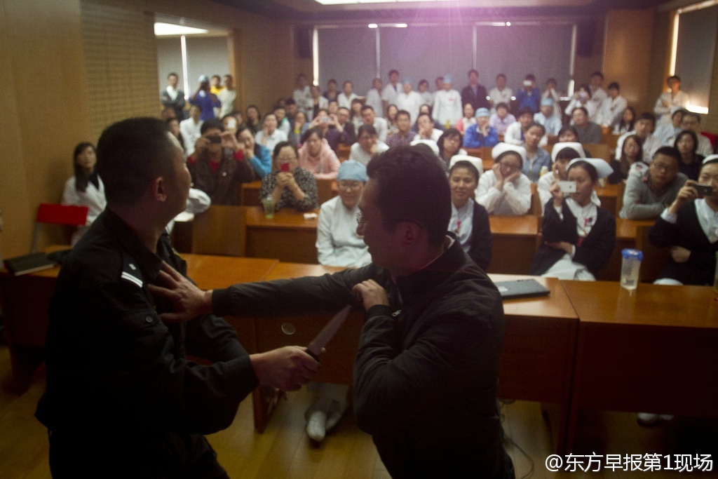5日,上海华山医院邀请宝山公安分局教官,向职工培训面对暴力侵害如何自卫;同日,中山医院也邀请世界跆拳道联盟黑带四段高手,前来传授防身绝招,吸引了大批医护员工。
