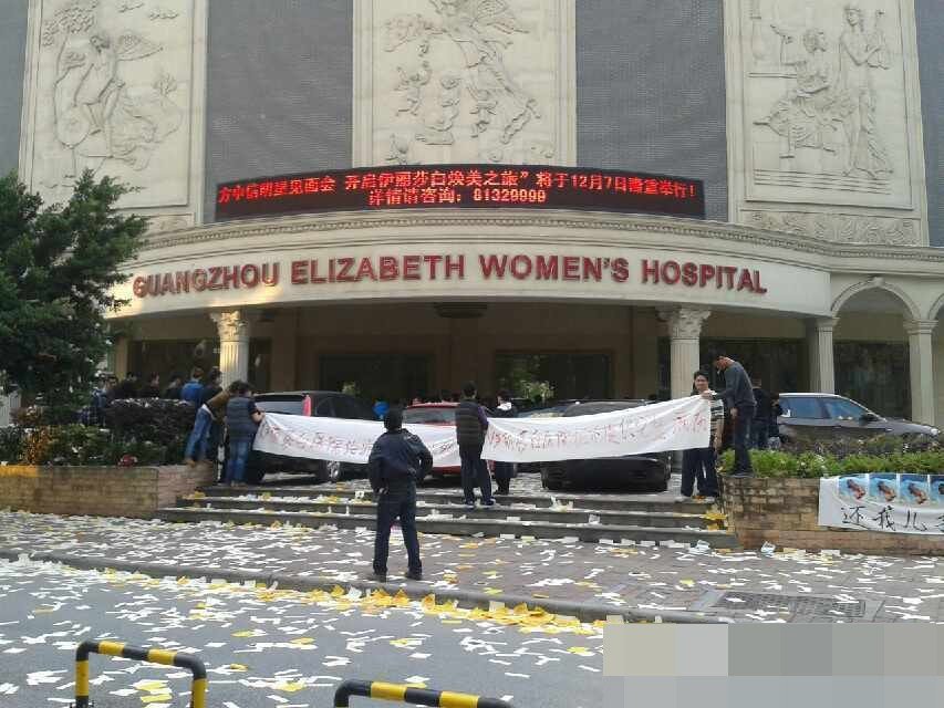 2013年12月9日下午3点左右,广州伊丽莎白妇产医院发生发生了一起病患家属聚众打砸事件,近百人用事先准备好的砖头木棒打砸医院一楼大门和接待大厅,现场损毁严重,一片狼藉。据悉,打砸发生时,有二十余名警察在医院维持次序,广州市荔湾区卫生局相关人员在场调解。