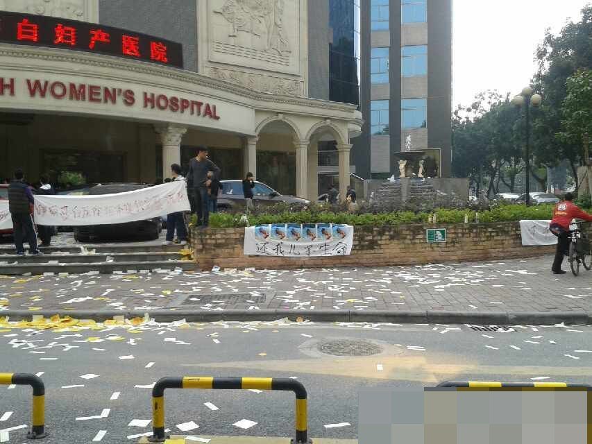 但是广州伊丽莎白妇产医院方面出示了相关视频和相片,显示上午10点30分,事故家属带领约上百人聚集在广州伊丽莎白妇产医院门口:拉横幅,当门摆灵堂,大肆撒冥币,堵塞交通,妨碍医院正常运营。
