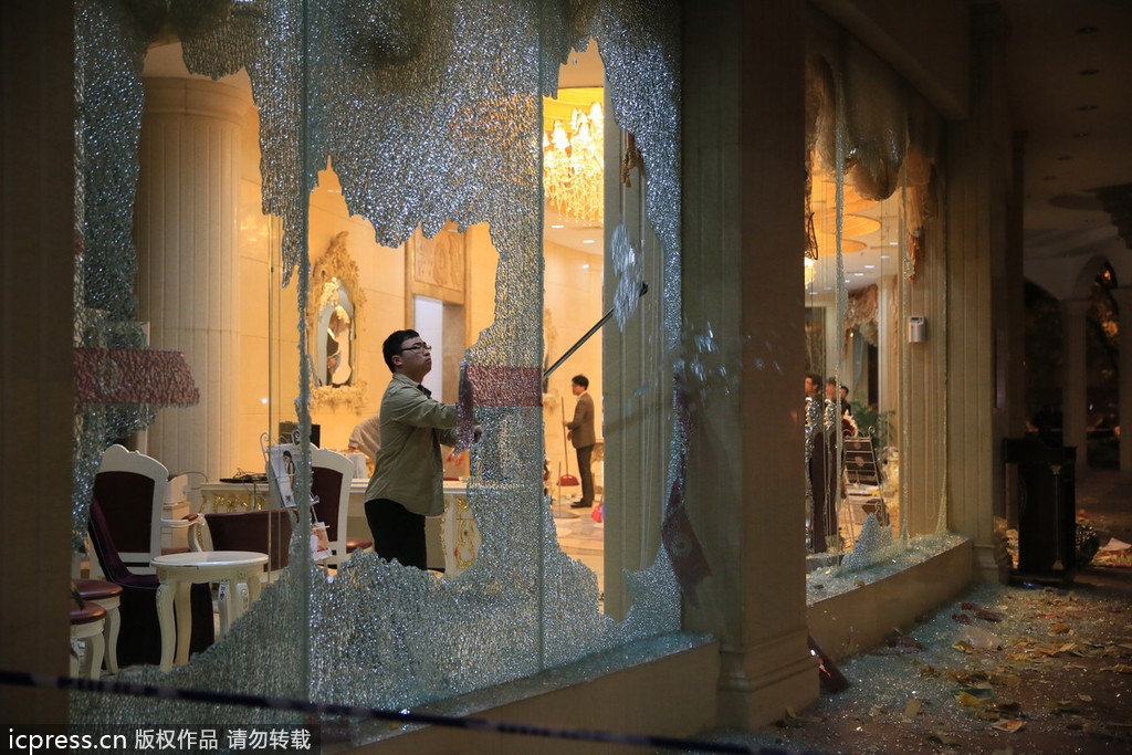 院方介绍,医院方一直在积极主动沟通解决事件,并在中午时分,为所有聚集人员提供了午餐;15:00左右,几辆车临时停在医院门口,从车上下来几个人,把事先准备好的砖头、棍子等物品散发到人群,鼓动聚集人员对医院大堂进行打砸,对医院工作人员进行殴打。打砸事件共持续了20余分钟,造成医院大堂被损毁、多位工作人员流血被伤、许多正在就医的市民被惊吓等后果。其中一位医院工作人员左眼被打伤,怀疑眼角膜破裂,伤情严重。该伤员在送医过程中,还遭到了打砸人员的追打阻挠。