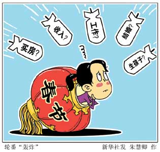 不知不觉,80后沦为婚姻“老大难”,90后晋级“晚婚”人群。有网友吐槽,“逼婚”已和“抢红包”“春晚”并称羊年春节三大主打话题,纷纷感慨“一句‘找对象没?’惹无数青年顿恐归”。
