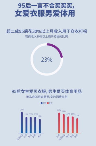 倚靠着父母辈的财富积淀,在宽裕富足环境下长大的95后们,对于“买买买”这件事,自然毫不手软。超二成以上的95后会花费30%以上的月收入用于穿衣打扮,女生爱买衣服,男生爱买体育用品。他们不注重日常衣服的品牌,但美妆等领域则被名牌承包,并开始进入奢侈品消费大军,购买力绝对在线!