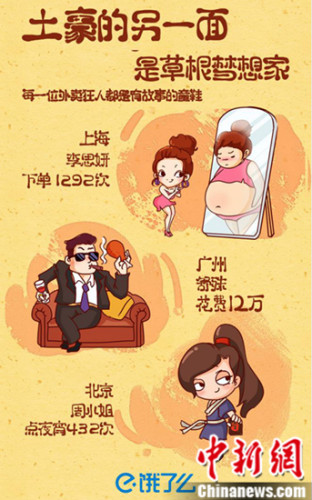 据悉,这些土豪的另一面,是草根梦想家。饿了么2016年订单王一年内体重从130斤减到95斤,订单背后,是超燃轻食减肥记;饿了么2016年花钱王则是一位创业者,他和同事点大餐,共同经历创业风雨;饿了么2016年夜宵王则是常年奔波于剧组,每一个深夜订单,都见证她的忙碌。