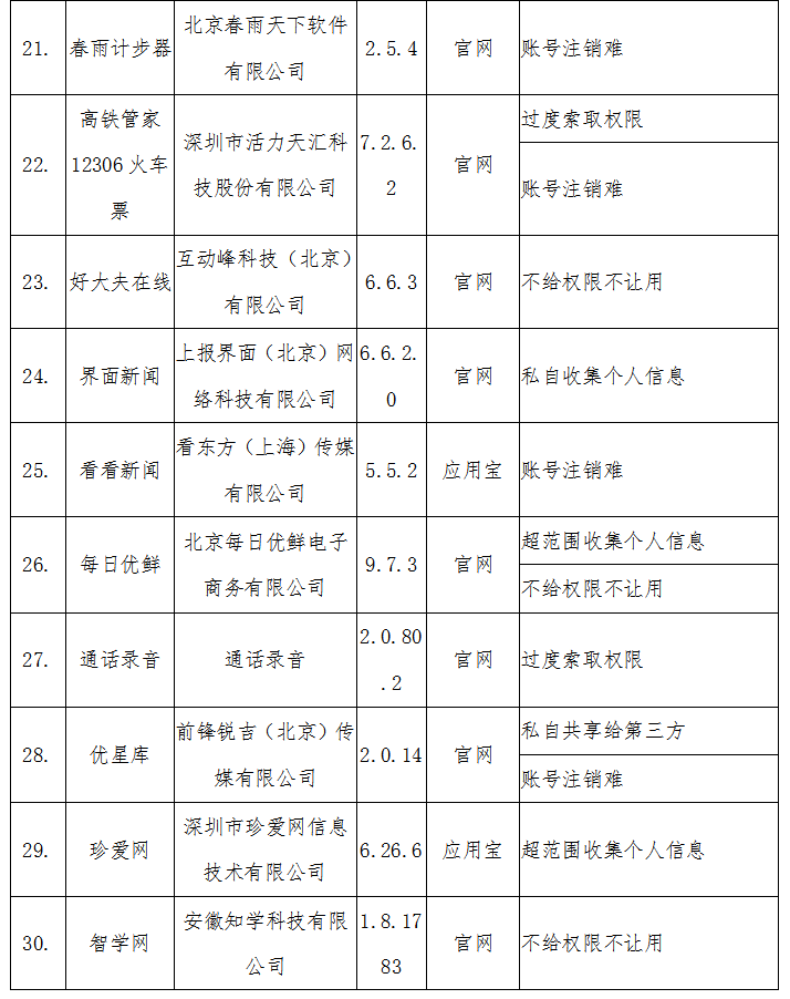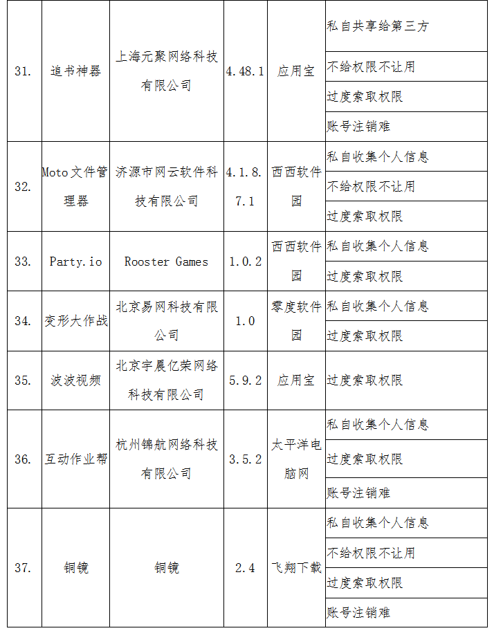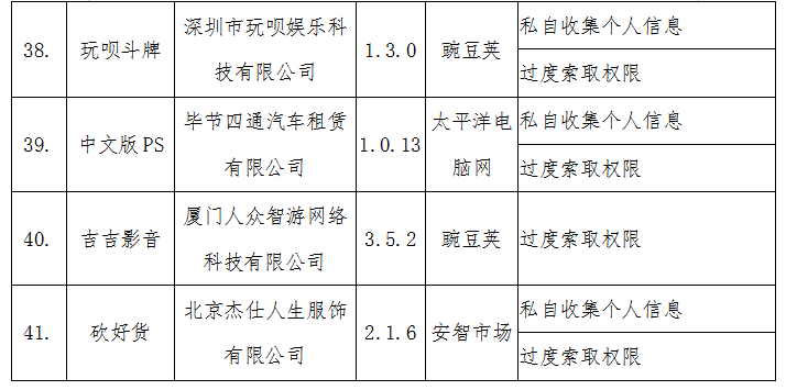截至目前,尚有41款APP存在违规收集、使用用户个人信息、不合理索取用户权限、为用户账号注销设置障碍等问题(详见附件),未完成整改。上述APP应在12月31日前完成整改落实工作,逾期不整改的,工业和信息化部将依法依规组织开展相关处置工作。