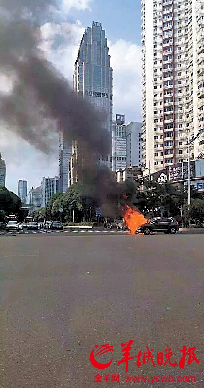 这起自燃事故发生在周五中午,引得事故路段交通堵塞,全城关注。