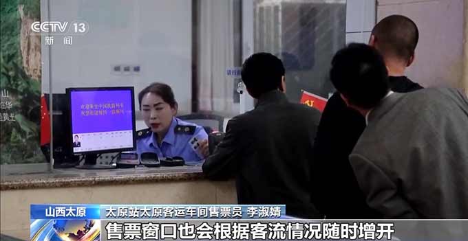 太原站太原客运车间售票员 李淑婧:为应对国庆出行高峰,车站也对多趟列车进行了加挂,售票窗口也会根据客流情况随时增开,方便旅客快速退改签,进站口也增设了绿色通道,以保障旅客朋友的顺利出行。