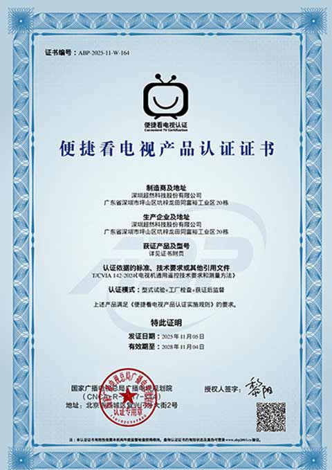 深圳超然科技本次通过认证的插入式微型机顶盒及配套遥控器,正是积极响应政策导向、深耕用户需求的成果体现。