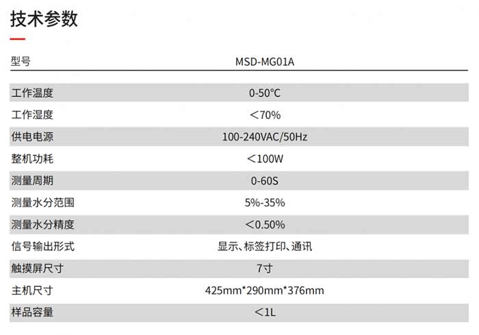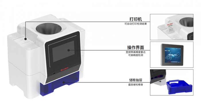 可对粮食进行无损实时水份分析,检测速度快(1分钟内)、精度高、对粮食产地不敏感,具有较高的动态范围。