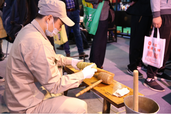 黄师傅介绍说:“我从事已有7年了,现在展示给大家展示的是将半成品的黑茶加工成成品的花卷茶的过程,这种技艺已经传承了2000多年。这次将该技艺搬上糖酒会是希望让大家更直观地了解传统黑茶的制作工艺。”
