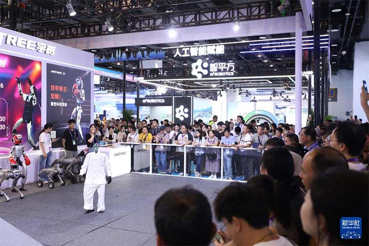 观众围观在表演的宇树机器人(9月18日摄)。新华社发