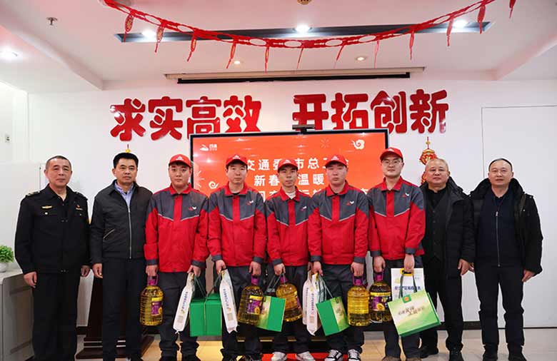 1月28日,北京市交通委二级巡视员潘春明,北京市交通运输工会主席、二级巡视员顾旭锋,北京市交通委西城运管分局杨涛,北京市交通委货运处副处长孟庆军赴四通搬家总部开展“新春送温暖”慰问活动,为坚守在交通运输一线的货运司机送来冬日的暖心关怀,传递党和政府以及工会组织的关爱与期许。