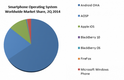 ABI Research的一份最新报告显示,五月至七月Android智能手机全球出货量的20%基于AOSP。该公司估计,单单上一季的增幅就高达20%。