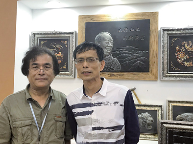 ▲南翔(右)与铁板浮雕师郭海博(左)。