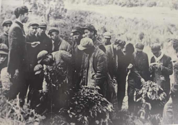 1956年,保山新城农场干部职工到省农业科学院热带亚热带经济作物研究所学习咖啡种植技术(隆阳区档案馆馆藏照片)。