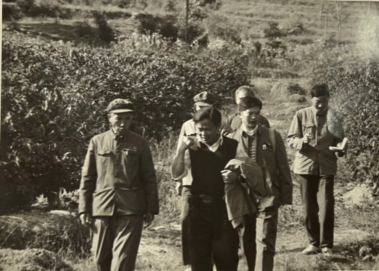 1985年,杨善洲到潞江农场考察小粒咖啡生产种植情况(隆阳区档案馆馆藏照片)。