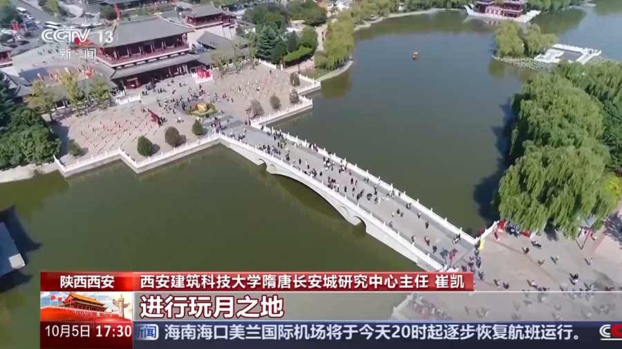 西安建筑科技大学隋唐长安城研究中心主任崔凯:现在我们的位置就是唐代的杏园、曲江池、芙蓉园一带,这一带在当时就是唐人中秋之夜进行“玩月”之地。当时白居易在江州为官的时候,他作了一首诗,昔年八月十五夜,曲江池畔杏园边,就是点出了我们现在这个位置。从今天留下来的这些唐诗当中,表达不同诗人感情的同时,它还描述了城市建筑空间,也为我们展现了一幅真实生动的长安城市图景。