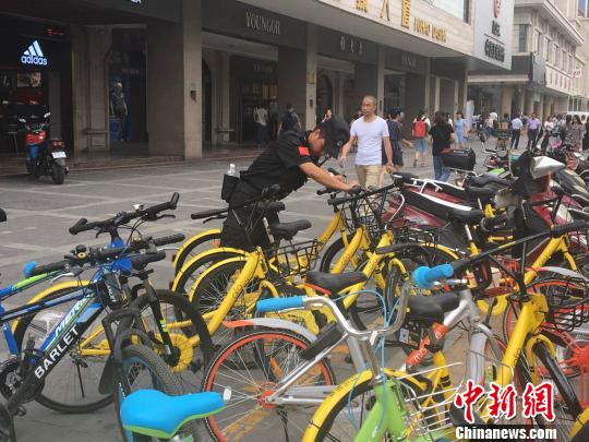图为西安街头停放的共享单车。 燕武 摄