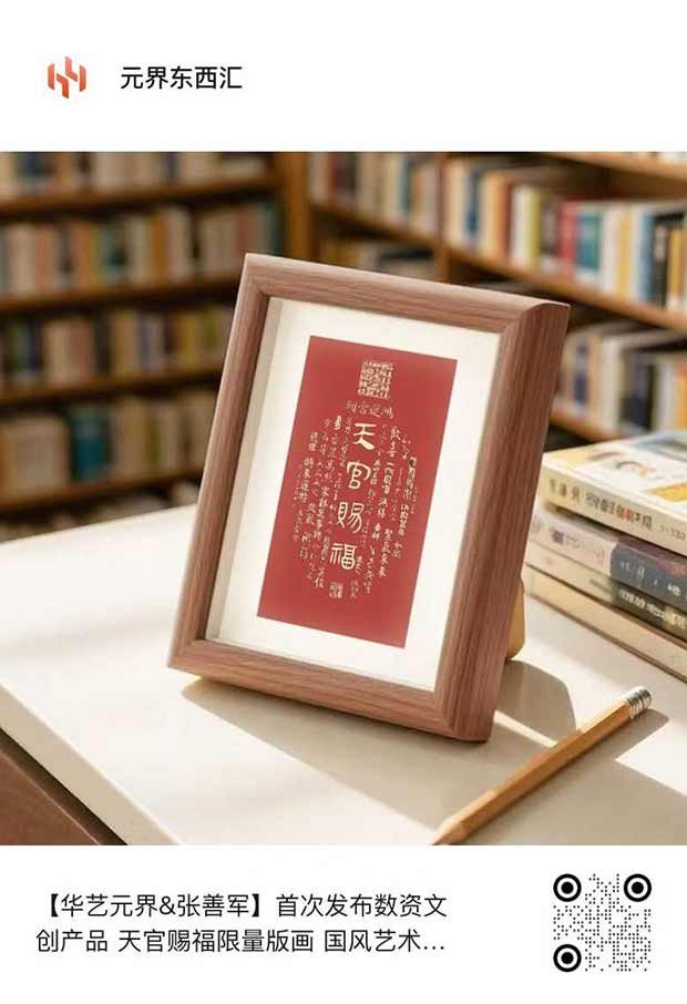 【华艺元界&张善军】首次发布数资文创产品 天官赐福限量文创 国风艺术装饰 使用手机微信扫码了解商品信息。
