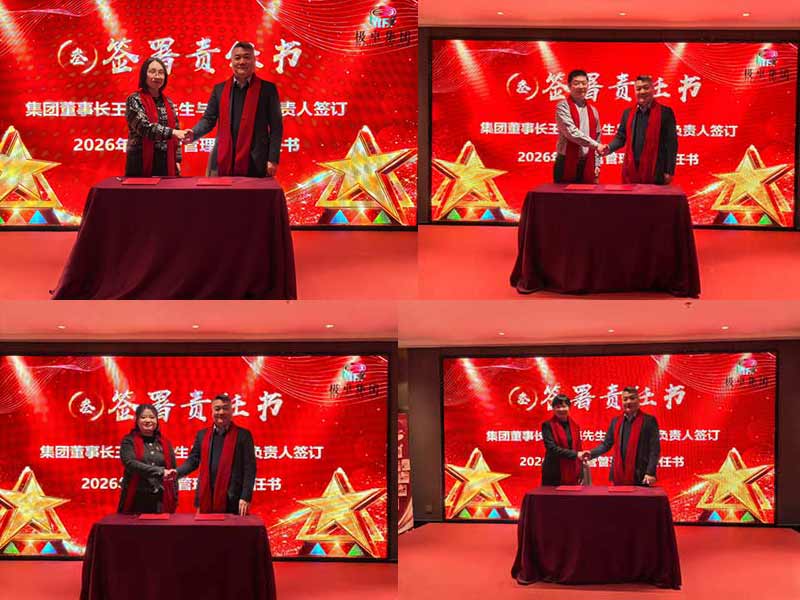 在全体与会人员的共同见证下,极卓控股集团董事长王宝海与集团各重点项目负责人逐一签署了《2026年度经营管理目标责任状》,明确了新一年的行动纲领,也把集团战略进行了层层分解、落实到人,标志着极卓事业在新征程上迈出了坚实的一步。