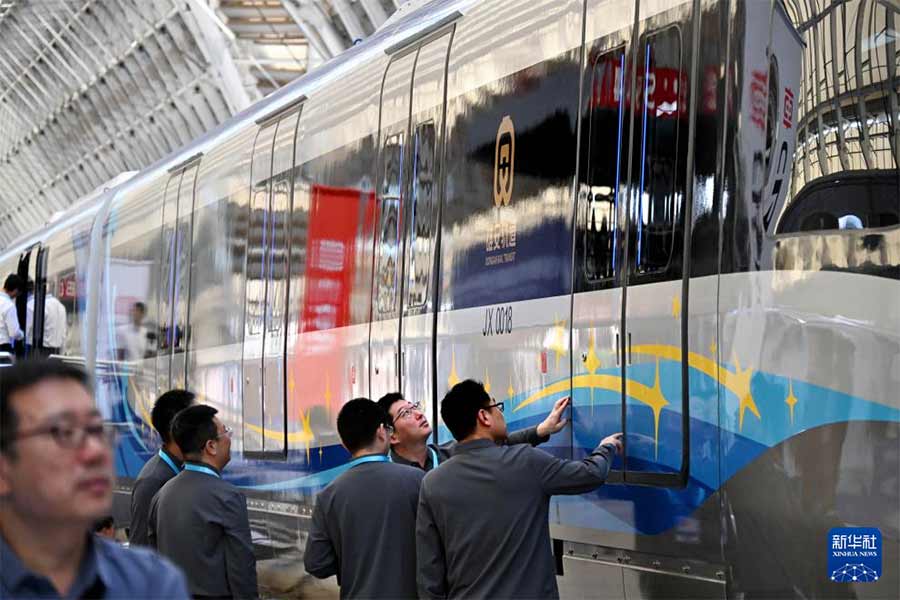 9月18日,智能市域列车在中铁青岛世界博览城亮相。新华社记者李紫恒 摄