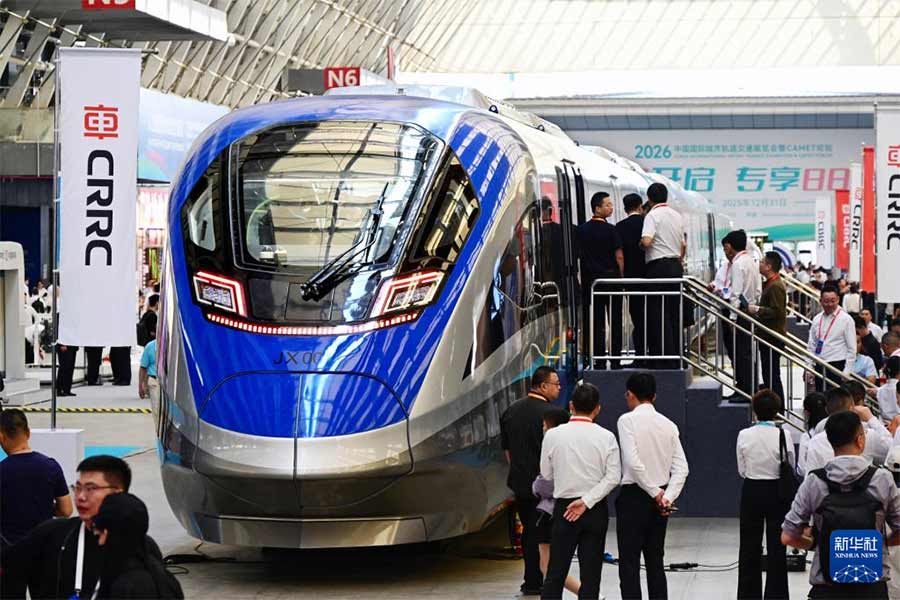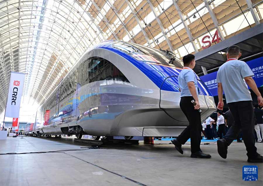 9月18日,参观者从智能市域列车旁经过。新华社记者 李紫恒摄