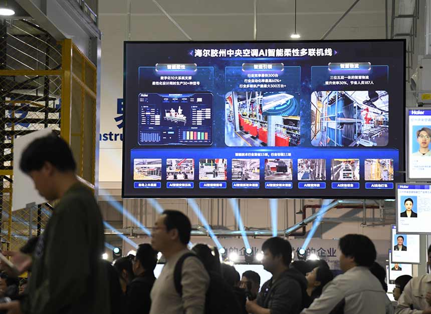 2025年4月17日,参观者在海尔AI赋能多联机互联工厂参观。新华社记者 李紫恒 摄