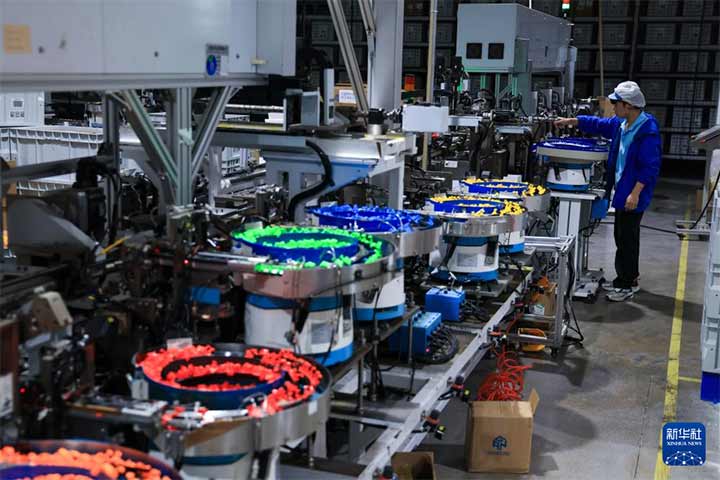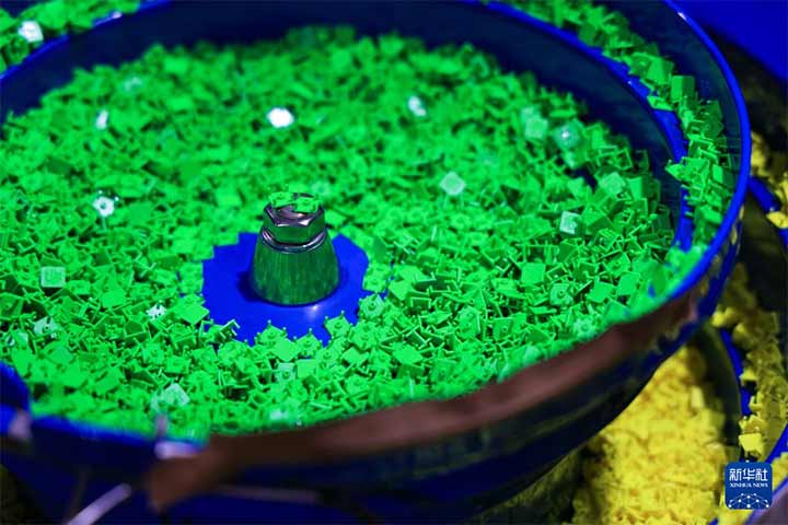 10月29日在广东佛山顺德淦源科技的智能制造基地拍摄的等待组装的魔方组件。新华社记者 霍思颖 摄