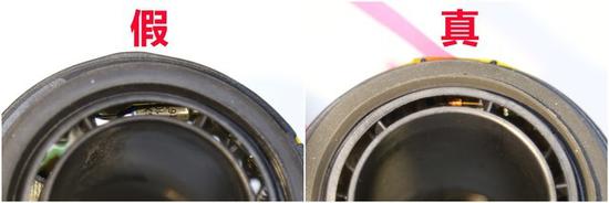 正品戴森吹风机的后盖采用了物理气相沉积(PVD)的技术来实现彩色的外观,这种技术不但能够实现更均匀的喷涂,而且还能增加产品外壳的耐磨度、强度等功能。假戴森吹风机则采用了最基本的喷漆方式,除了视觉上的喷漆不均匀外,在对比后也能看出明显的色差。