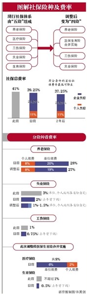 去年,人社部、财政部曾下发文件,下调失业、工伤、生育保险的费率。目前,我国社保总费率已由过去的41%降至39.25%,其中,企业承担的部分为28.25%。