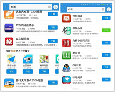 就比如说我通过搜“抢票”、“高铁”、“出行”、“小说”等关键词得到很多相关的APP,对整个春运的行程有了一个比较深入的了解,在旅途中事事都有了充分的准备;而且无论是想看电影、看电视剧、听歌、看漫画或者学习,都能找到一大堆的相关应用,让旅途变得不至于那么无聊。