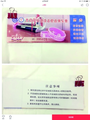 网络叫卖地铁志愿者车票 北京地铁:勿轻信卖家所言