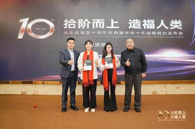 十周年庆典上,德麦森集团特别表彰了十年来的优秀员工、奋战在一线的项目团队和长期合作伙伴。集团副总裁杨友高表示:“没有你们的信任与支持,就没有德麦森的今天。感恩同行,未来我们继续携手共进。”