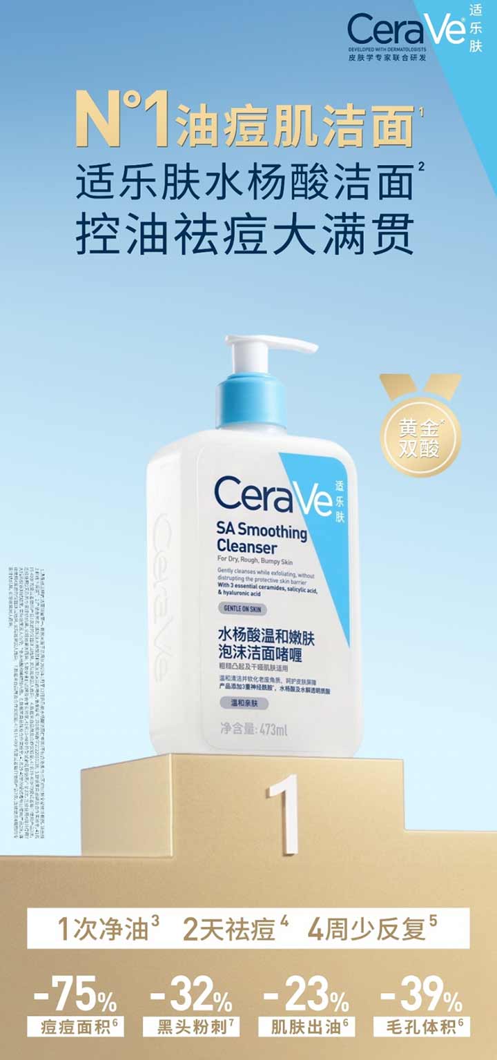 于此同时,品牌旗下专为油痘肌研发的适乐肤水杨酸洁面迎来全面功效革新。精研黄金双酸,以全球科学研究和临床试验为支撑,实证源头击溃油痘难题,减少出油、痘痘、黑头粉刺、粗糙、毛孔、泛红,并保护皮肤屏障不受损。以1次净油,2天祛痘,4周少反复的高效表现,持续夯实在油痘肌清洁领域的领先地位。
