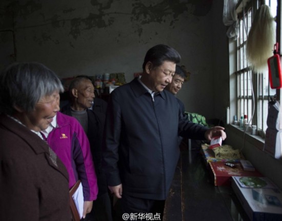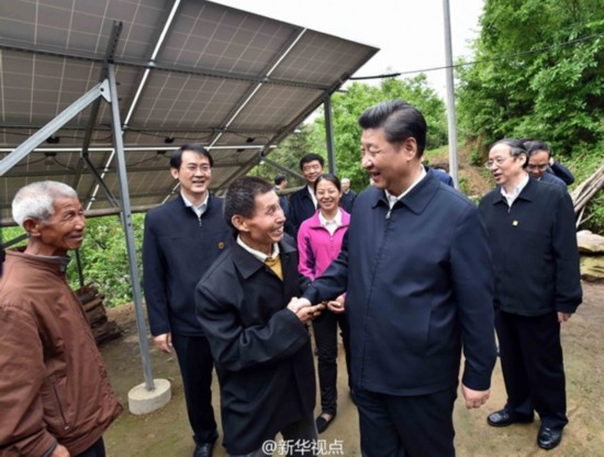 总书记一连走进5户农家,听取村民对实施光伏发电扶贫项目、种植茶叶、发展养殖业以及移民搬迁等的想法,了解省市县开展扶贫工作的具体做法和取得的成效。