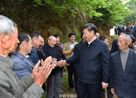 24日下午,习近平来到大湾村走访村民,同当地干部群众共商脱贫攻坚大计。