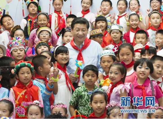 2013年5月29日,习近平在北京市少年宫参加“快乐童年放飞希望”主题队日活动。新华社记者 李学仁 摄