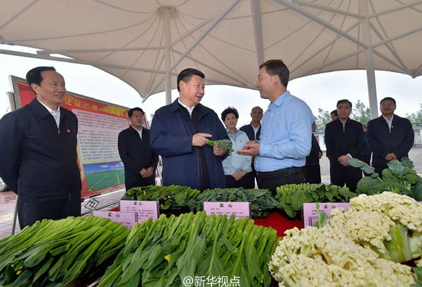 细雨绵绵,沃野千里。宁夏原州区彭堡镇姚磨村,习近平冒雨视察万亩冷凉蔬菜基地。蔬菜展台前,新鲜采摘的西兰花、紫甘蓝、辣椒、马铃薯等,整齐“列队”。边走边看,习近平问得仔细。“检测标准怎么样?”“一亩地收入多少?”“农活有技术员指导吗?”“喷灌设施一亩地成本多少?”村里的党员干部、种植大户簇拥在总书记身边。习近平和他们聊起土地承包费、务农打工费、入股分红等,询问他们生产中遇到的困难。一位农民说,感觉市场还不大稳定,想更好了解市场需求。习近平表示,防范市场风险,既需要经营个体敏锐把握,也需要政府加强服务,尤其要做好信息服务工作。 (文字:新华社记者霍小光,摄影:新华社记者鞠鹏、李涛)(据新华社“新华视点”微博)