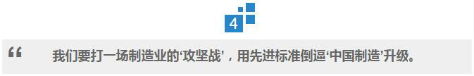 “我们要打一场制造业的‘攻坚战’,用先进标准倒逼‘中国制造’升级。”李克强总理在4月6日的国务院常务会议上说。当天会议决定实施《装备制造业标准化和质量提升规划》。李克强说,坚持标准引领,建设制造强国,是结构性改革尤其是供给侧结构性改革的重要内容,有利于改善供给、扩大需求,促进产品产业迈向中高端。他强调:“要提振消费者对‘中国制造’的信心,支撑制造业提质增效,提升国际竞争力。”