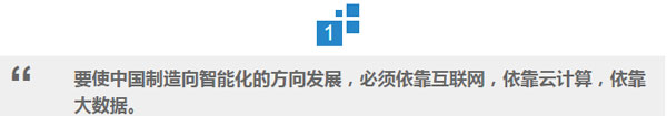在今年6月的夏季达沃斯论坛上,李克强总理在会见企业家代表时说,中国制造2025和“互联网+”是不可分割的,这是因为我们要推动中国制造升级,必须向 智能化的方向发展。而要使中国制造向智能化的方向发展,必须依靠互联网,依靠云计算,依靠大数据,这样才能使中国200多项产量占世界第一的工业产品能够 跃上新的水平。