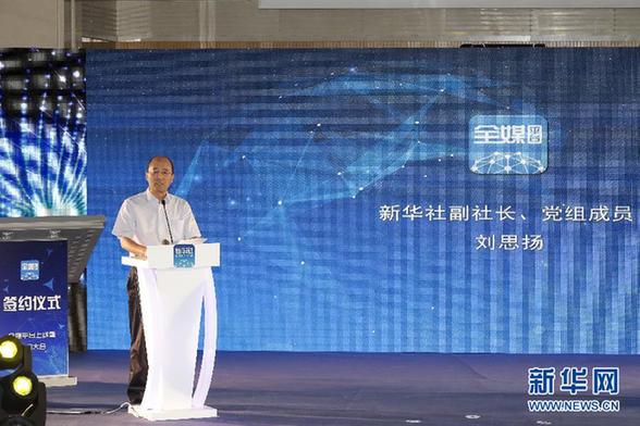 8月30日,全媒平台上线暨签约大会在北京举行。这是新华社副社长、党组成员刘思扬讲话。新华社记者沈伯韩摄