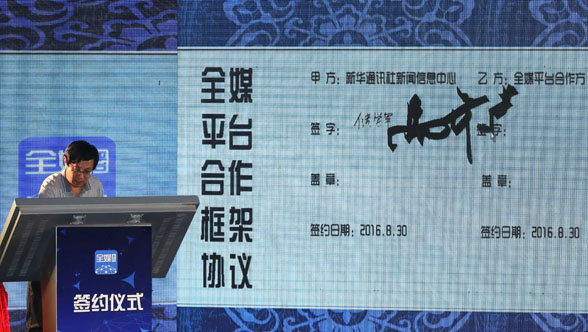 8月30日,全媒平台上线暨签约大会在北京举行。新华社记者沈伯韩摄