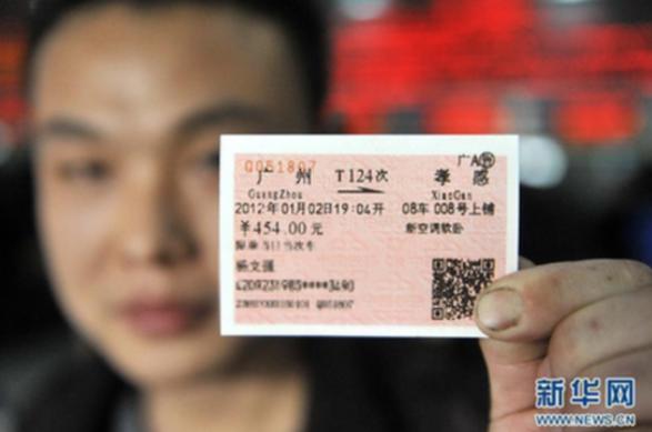 资料图。2012年1月1日起,火车票实名制在全国范围内开始实施。图为一位旅客在广州火车站售票厅展示刚买到的实名制火车票。新华社记者 陈晔华 摄