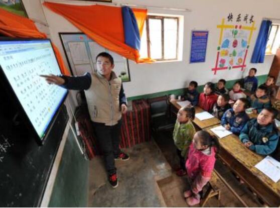 宁夏西海固地区泾源县泾河源镇底沟村教学点的老师利用多媒体教学设备给学生们上课。(新华社记者 彭昭之 2015年3月19日摄)