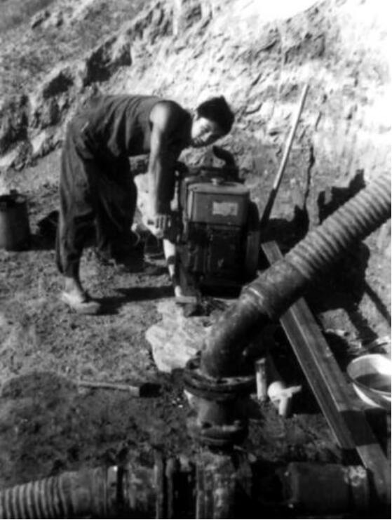这是习近平在梁家河参加劳动的照片,他正在操作柴油机抽水。(延川县委宣传部供图)