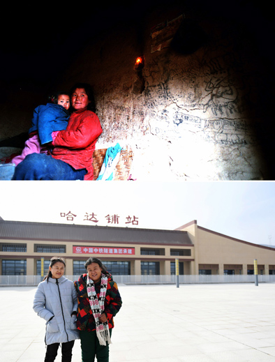 下图为2016年12月24日,杨尕女(右)和女儿在陇南市宕昌县新建成投用的兰渝铁路哈达铺火车站前合影。