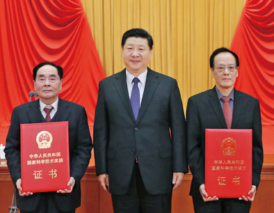 ▲1月8日,国家科学技术奖励大会在北京人民大会堂隆重举行。党和国家领导人习近平、李克强、张高丽、王沪宁出席大会并为获奖代表颁奖。会前,习近平等党和国家领导人会见获奖代表并同大家合影留念。