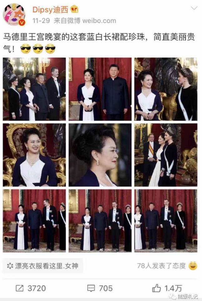 和彭老师第一次见面,两人的合影被网友赞为“时尚优雅气质的巅峰大片”。