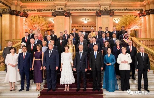 合影前,特朗普夫妇走到咱们Couple面前说,明天见!(第二日晚有全球瞩目的习特会);默克尔转过身来和彭老师聊天,解释她峰会迟到的原因。她的飞机出了故障临时迫降,妥妥地晚到了大半天,也是蛮郁闷的。