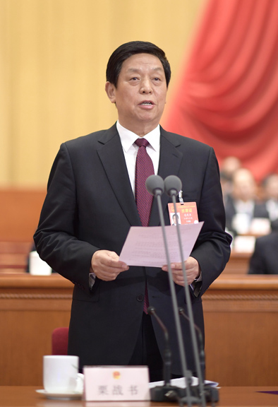 大会主席团常务主席、执行主席栗战书主持大会。大会主席团常务主席、执行主席王晨、曹建明、张春贤、沈跃跃、吉炳轩、艾力更·依明巴海、万鄂湘、陈竺、王东明、白玛赤林、丁仲礼、郝明金、蔡达峰、武维华、杨振武在主席台执行主席席就座。