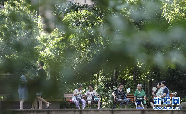居民在湖北省武汉市青山区的一棚改安置小区休闲(7月30日摄)。新华社记者 程敏 摄